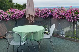 Hier können Sie gemütlich essen, bei herrlichem Wetter ein Sonnenbad nehmen oder abends die Ruhe und den wundervollen Ausblick genießen. Da die Wohnung eine Nichtraucherwohnung ist, bieten wir unseren rauchenden Gästen auf der Terrasse einen komfortablen Platz.